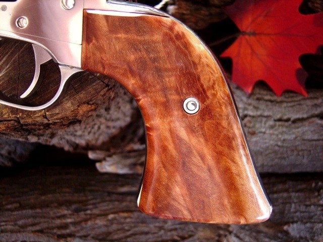 These grips are stabilized wood and highly polished, there is no external finish to take care of. They are excellent for a hard used gun such as cowboy shooting. A coat of paste wax will keep them looking good. They can be easily polished back to a shine with a small buffing wheel in an electric drill using a bit of jewelers rouge. Or you can use Brownells triple F or five F rubbing compound on them.